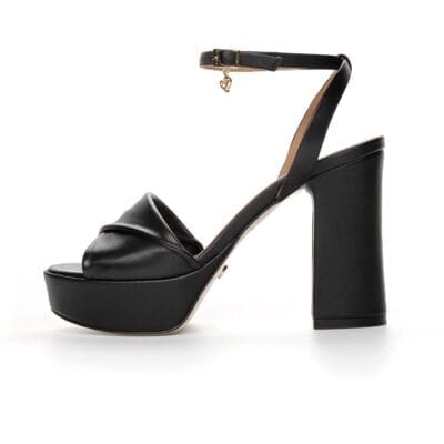 Osadzone na solidnym słupku z platformą, sandały SUNSHINE zapewniają nie tylko stabilność, ale również wyjątkowy komfort noszenia. Sandały wyposażone są w zapięcie wokół kostki. Pasek wokół kostki został ozdobiony efektownym, złotym detalem.