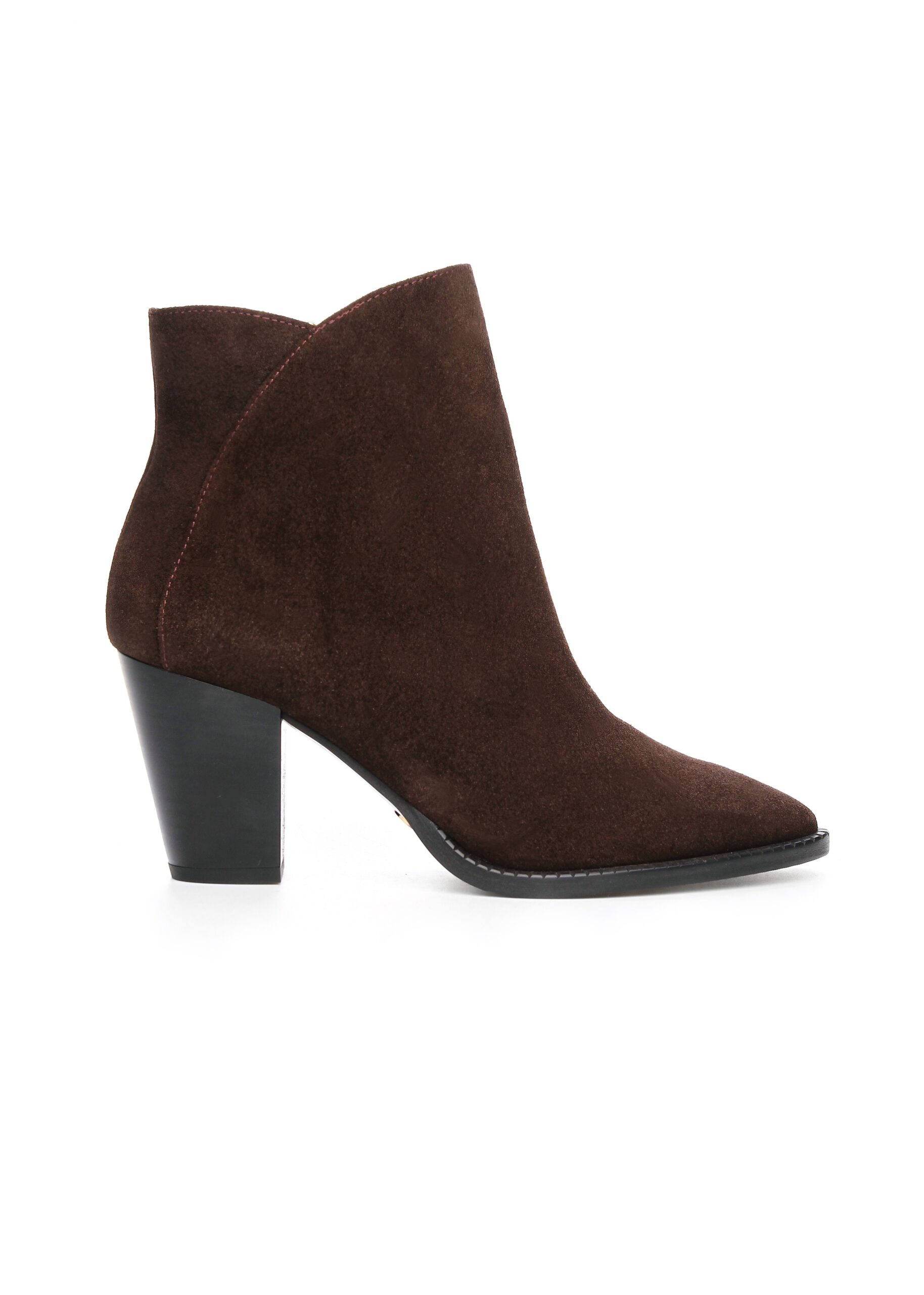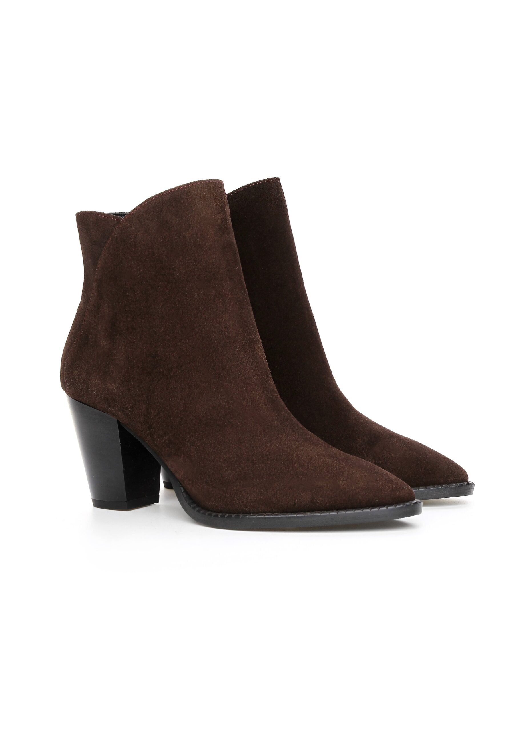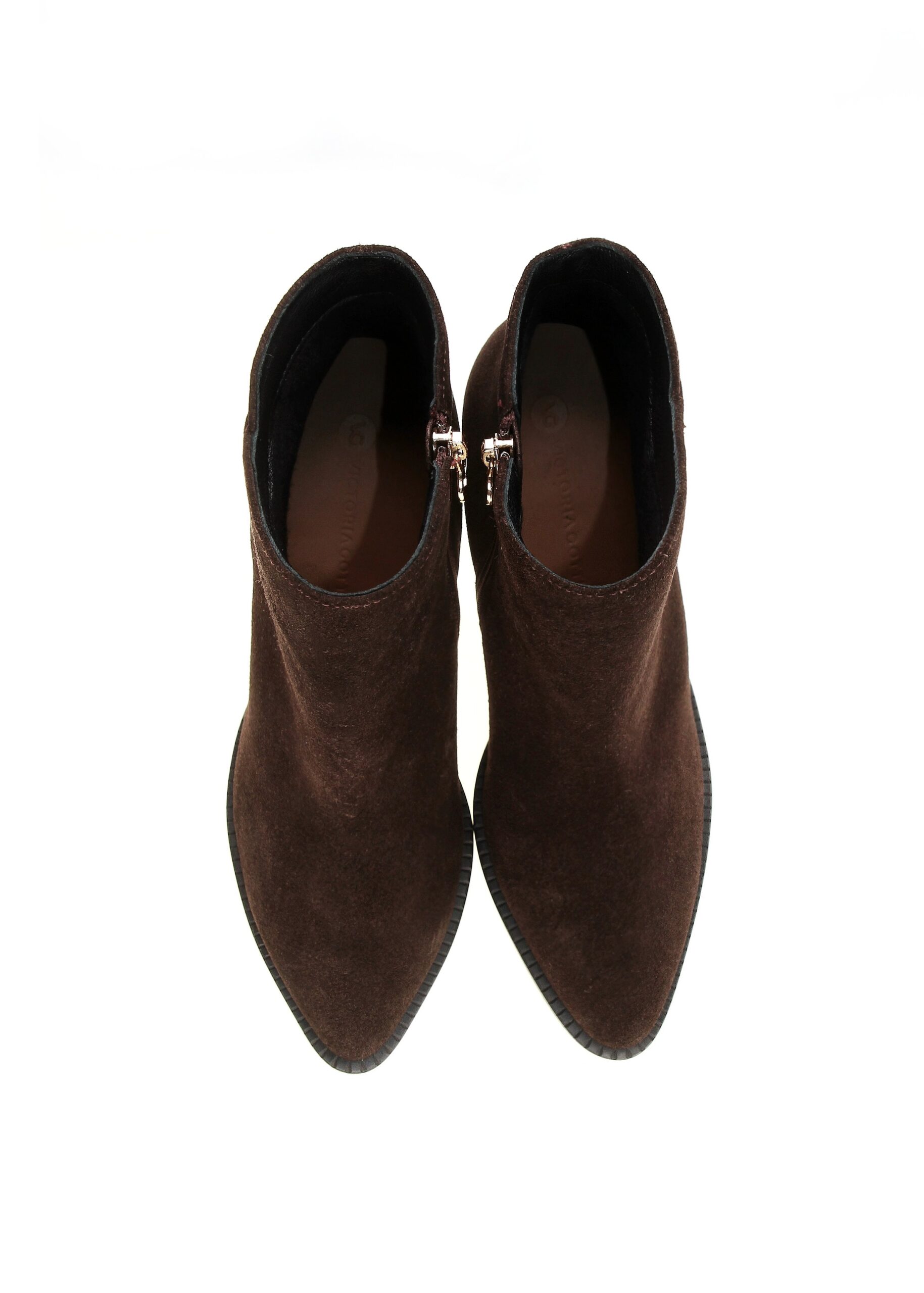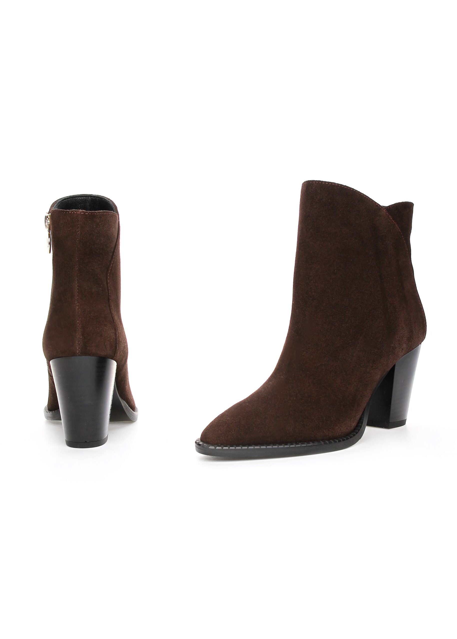 Brązowe czekoladowe botki ZOLA – wyjątkowe botki, które łączą w sobie elegancję i wygodę. Wykonane z najwyższej jakości naturalnego zamszu, zachwycają głębokim odcieniem gorzkiej czekolady, który doskonale komponuje się z jesiennymi i zimowymi stylizacjami. Dzięki stabilnemu obcasowi o wysokości 8 cm buty zapewniają doskonały komfort noszenia, jednocześnie optycznie wysmuklając sylwetkę.