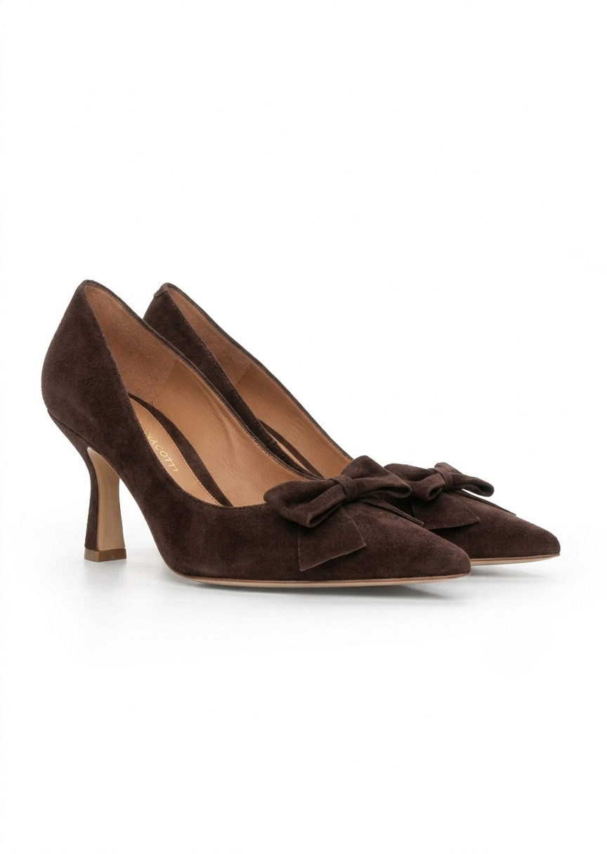 Brązowe zamszowe czółenka SANDRA BROWN z kokardą - elegancja w każdym detalu