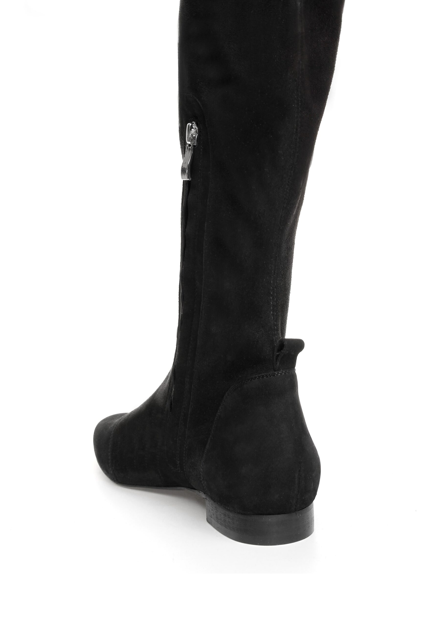 Czarne kozaki zamszowe GIA SUEDE z naturalnej skóry to połączenie klasyki i komfortu, które idealnie wpisuje się w ponadczasową elegancję.