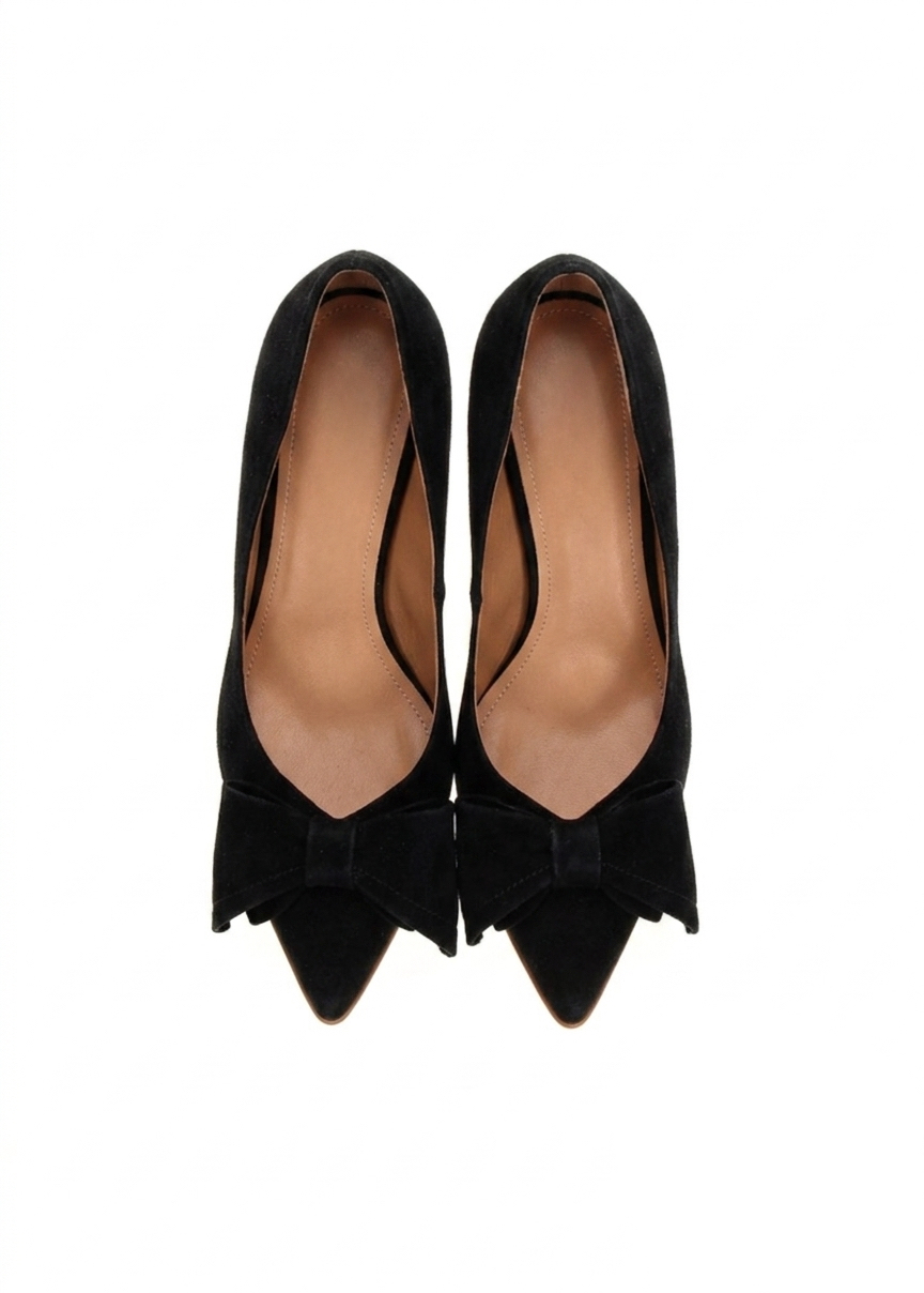 Smukły nosek w szpic wysmukla stopę. W efekcie całość wygląda bardzo kobieco i elegancko. Dodatkowo ozdobna kokardka dodaje subtelnego uroku. Jednocześnie wyróżnia model na tle klasycznych czółenek.
