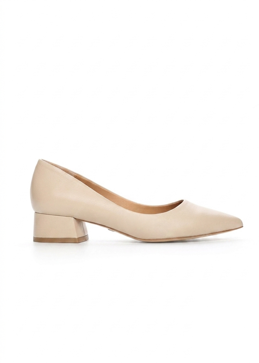 Klasyczne beżowe skórzane czółenka LEA BEIGE. Ręcznie wykonane w Polsce, wygodne i eleganckie. Stabilny obcas 5 cm i ponadczasowy design. Sprawdź inne kolory tego modelu: TUTAJ