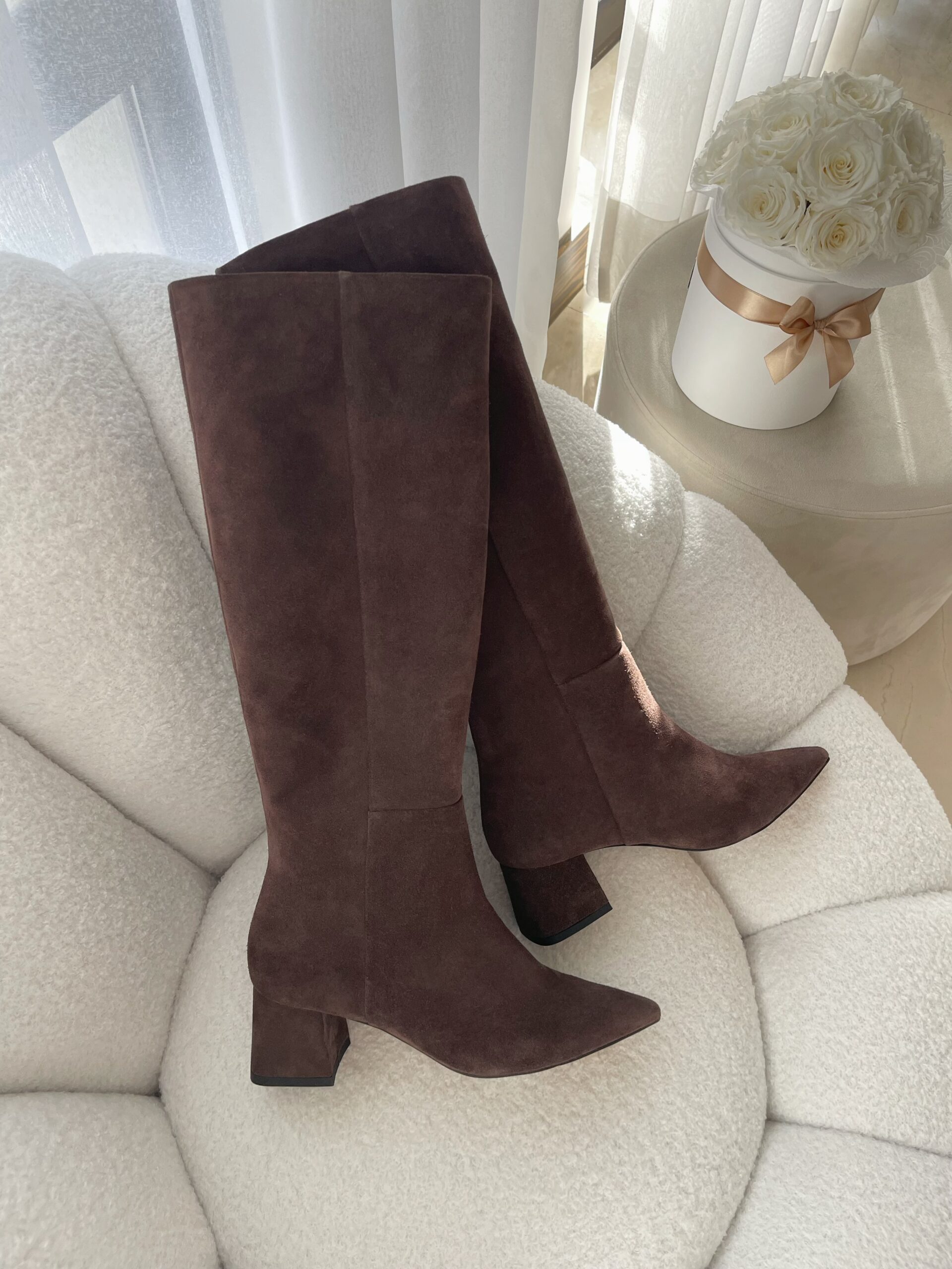 Brązowe zamszowe kozaki MADLEN to idealna propozycja dla kobiet, które stawiają na klasykę, wygodę i naturalne materiały. Wykonane z wysokiej jakości zamszu naturalnego w pięknym, głębokim brązie, doskonale łączą elegancję z komfortem. Dzięki niskiemu, stabilnemu obcasowi 5 cm buty świetnie sprawdzają się podczas codziennego użytkowania, a miękkie ocieplenie zapewnia ciepło w chłodne dni. Ponieważ brązowe zamszowe kozaki są wyjątkowo uniwersalne, bez trudu dopasujesz je do jesiennych i zimowych stylizacji – od sukienek, po płaszcze i proste spodnie.