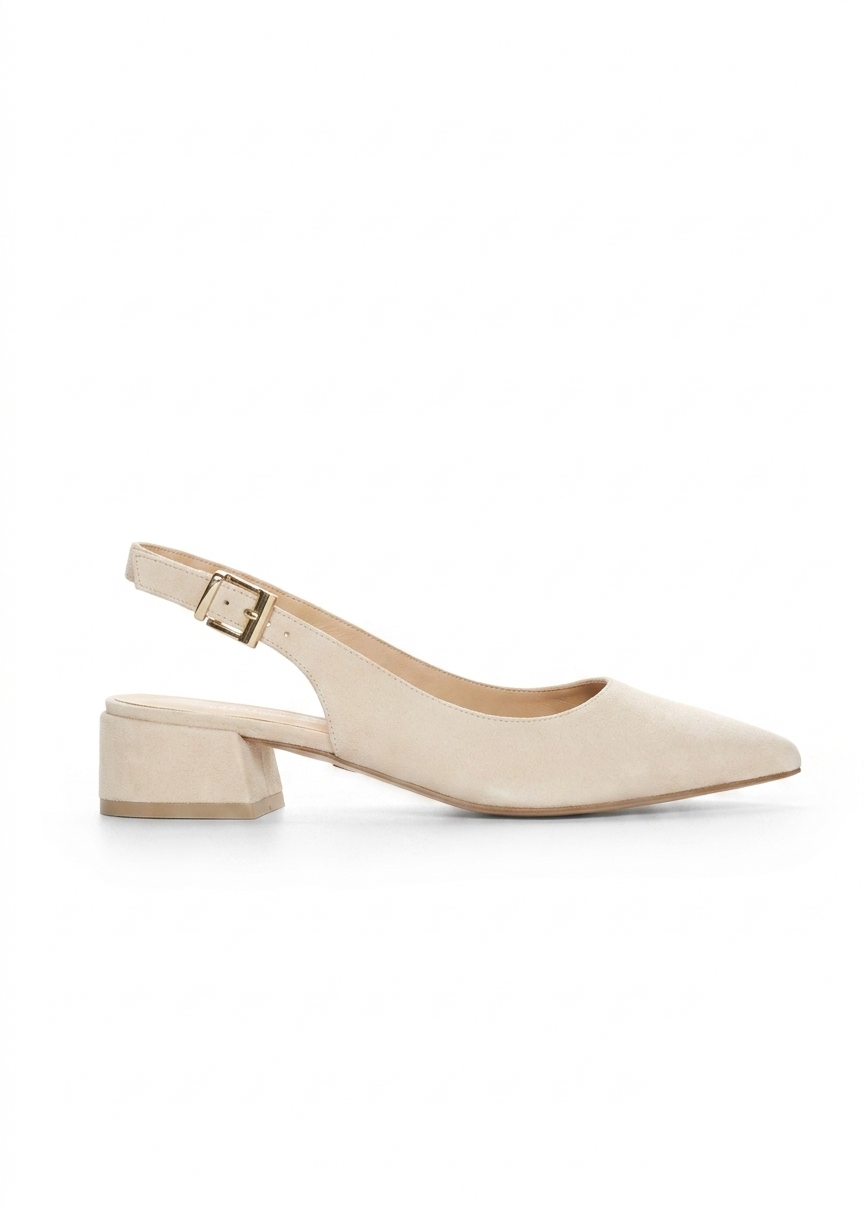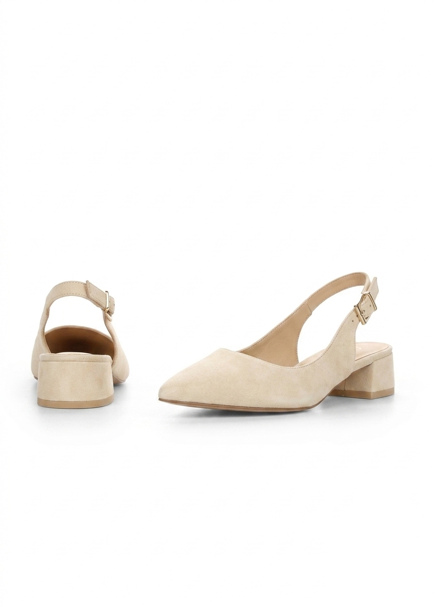 Subtelne beżowe zamszowe czółenka slingback 🤍