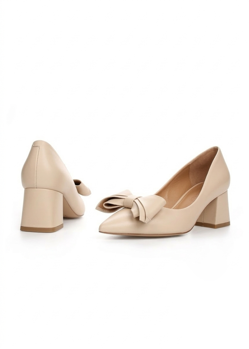 Beżowe skórzane czółenka 🤍 TESS to połączenie elegancji i komfortu, które każda kobieta doceni. Beżowe skórzane czółenka są wykonane w 100% z naturalnej skóry licowej i ręcznie produkowane w Polsce, dzięki czemu każda para jest unikalna i trwała. Ponadto, ręczne wykonanie gwarantuje perfekcyjne wykończenie każdego detalu, a delikatna kokardka u góry dodaje subtelnej elegancji.
