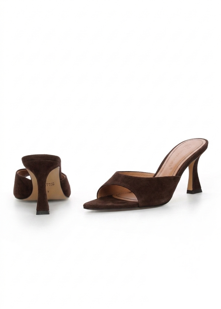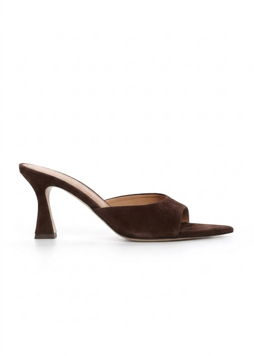 Eleganckie klapki JENNY BROWN wykonane z naturalnego zamszu to połączenie minimalistycznego stylu i wygody. Smukła szpilka wysmukla sylwetkę, a miękki materiał zapewnia komfort noszenia przez wiele godzin. Produkujemy je ręcznie w Polsce, dlatego każda para powstaje z dbałością o najmniejszy detal.